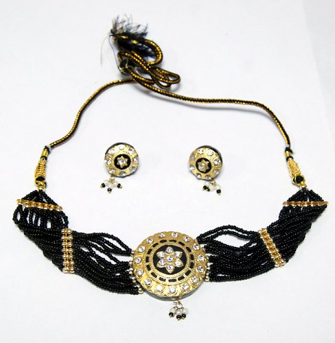 Unique Women Fashion Wear Indian Rajrang Handmade Bellydance Costume Black Beads Imitation Bridal Wedding Fashion Lakh / Lac Kundan Jewelry Jewellery Earrings Necklace Specs